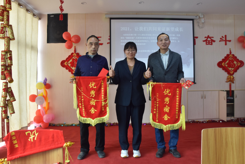 東莞市新望包裝機(jī)械有限公司2020年年度總結(jié)大會(huì)于2021年1月24日下午14:30在公司食堂隆重舉行。年終會(huì)議由行政部經(jīng)理張麗君主持。公司黨支部書(shū)記潘婉荷對(duì)黨支部成立5年以來(lái)的黨員活動(dòng)和黨建工作做了匯報(bào)和總結(jié)。公司運(yùn)營(yíng)管理中心和技術(shù)創(chuàng)新服務(wù)中心兩套班子成員緊靠大會(huì)主題“征途漫漫,惟有奮斗”進(jìn)行總結(jié)與探討,盤(pán)點(diǎn)過(guò)往成績(jī)與不足,為公司2021年戰(zhàn)略規(guī)劃獻(xiàn)計(jì)獻(xiàn)策,常委班子成員都發(fā)表了熱情洋溢的講話。公司總經(jīng)理羅永輝做了《前程無(wú)坦途 唯有奮起爭(zhēng)》的年度工作報(bào)告。