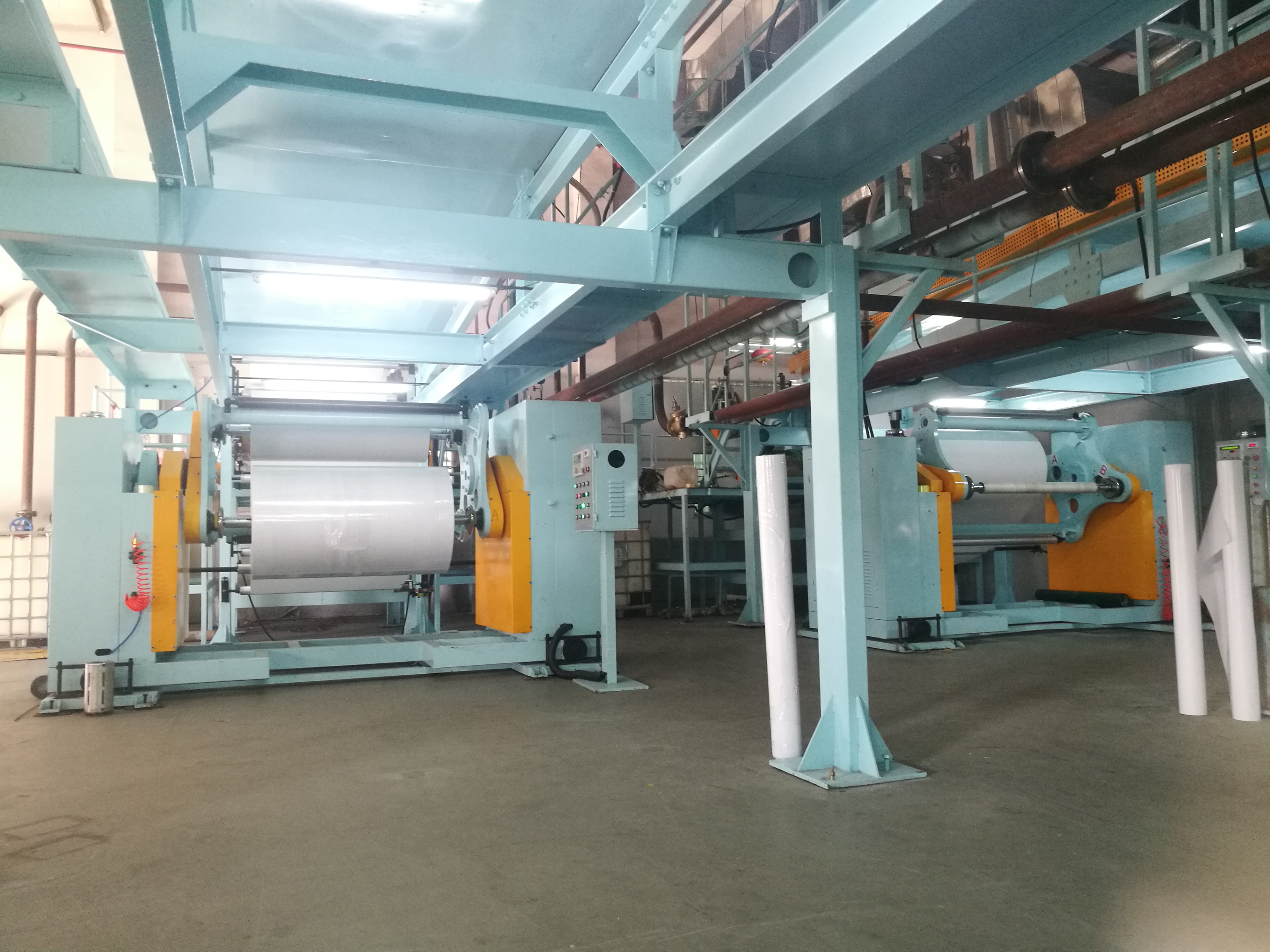 雙面涂布機采用矢量變頻無級調(diào)速大滾筒、牽引輥與網(wǎng)紋輥同步調(diào)速;網(wǎng)紋輥帶刮刀涂布方式,備有多種涂布量的網(wǎng)紋輥供選擇;移動式刮刀裝置;采用分段獨立恒溫半導(dǎo)體不銹鋼發(fā)熱管導(dǎo)熱油交換器加熱風(fēng)干燥系統(tǒng),可調(diào)式內(nèi)循環(huán)吸排氣裝置;烘箱內(nèi)導(dǎo)輥同主軸同步轉(zhuǎn)動,開門式烘箱及穿膜操作平臺;網(wǎng)紋輥、牽引壓輥由氣動電磁閥控制;自動計米裝置;收放卷軸采用鍵子式氣脹軸裝置,裝卸料操作方便;整機采用PLC電腦系統(tǒng)自動控制張力。
